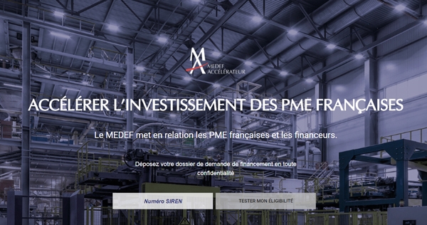 The Medef Investment Accelerator (MAI) is an association of the entrepreneurial and financial worlds created by the French employers association, Medef, whose members include the main financial institutions (AFG, FBF, FFA, and the Medef’s network of professional associations and regional bodies). The platform, launched in October 2017, connects SMEs and mid-market companies with partner financial institutions that can provide long-term financing tailored to their growth needs, such as equity or bonded loans.